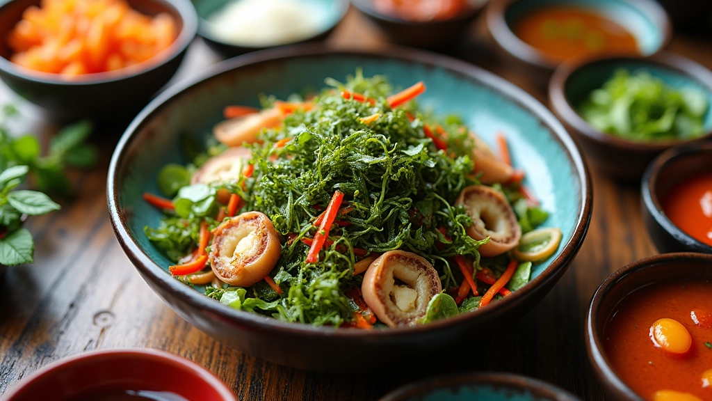 신선한 채소 샐러드를 곁들여 파래무침의 고소한 맛을 더욱 살릴 수 있습니다. 다양한 채소가 포함된 샐러드는 비타민과 미네랄이 풍부하여, 파래무침과의 조화로 식사의 맛과 영양을 한층 강화합니다. 예를 들어, 아삭한 오이와 달콤한 방울토마토를 추가하면 파래무침의 풍미가 더욱 돋보이면서도, 식감의 다양성도 더해지게 됩니다.