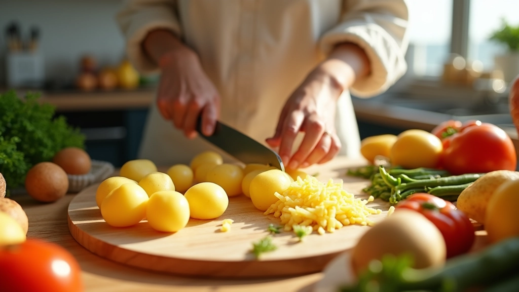 재료와 도구를 미리 준비해 두면 조리 과정이 훨씬 원활해집니다. 감자와 치즈를 손질하고 도구를 정리해두면, 요리가 자연스럽게 이어져 즐거운 시간이 될 것입니다.