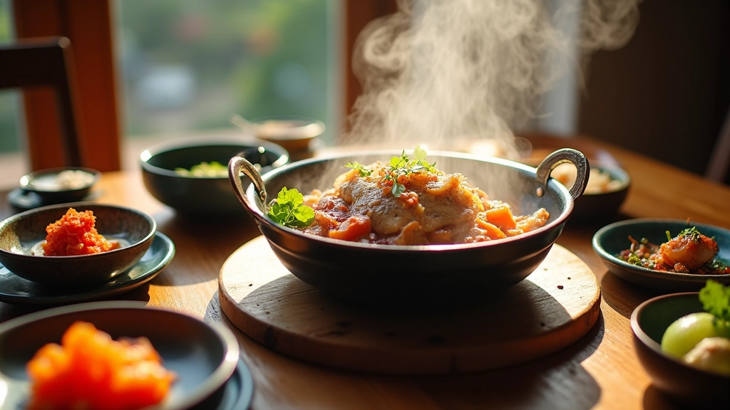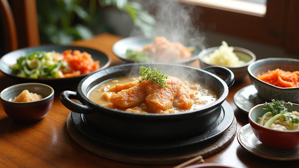 코다리찜의 담백한 맛을 더욱 돋보이게 해주는 반찬으로는 매콤한 김치를 추천합니다. 매콤한 김치는 그 자체로도 훌륭한 별미일 뿐만 아니라, 코다리찜의 깊고 고소한 맛을 상쇄하며 조화를 이루는 역할을 합니다. 연구에 따르면, 매운 음식이 담백한 요리와 함께 제공될 때 맛의 균형을 이루는 데 도움을 준다고 합니다.