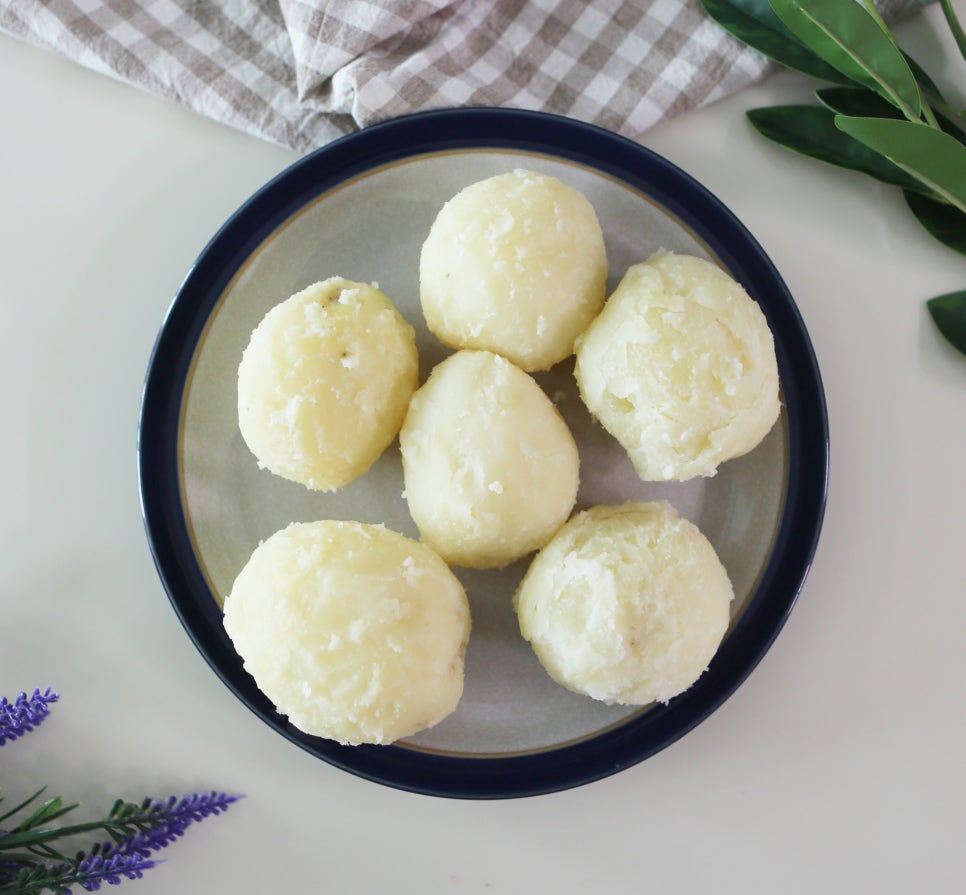 삶아낸 감자를 접시에 옮겨 담아서 완성 사진을 찍어봤는데요. 표면이 적당히 포슬포슬하게 일어나서 꽤나 먹음직스러워 보이네요 ^^
